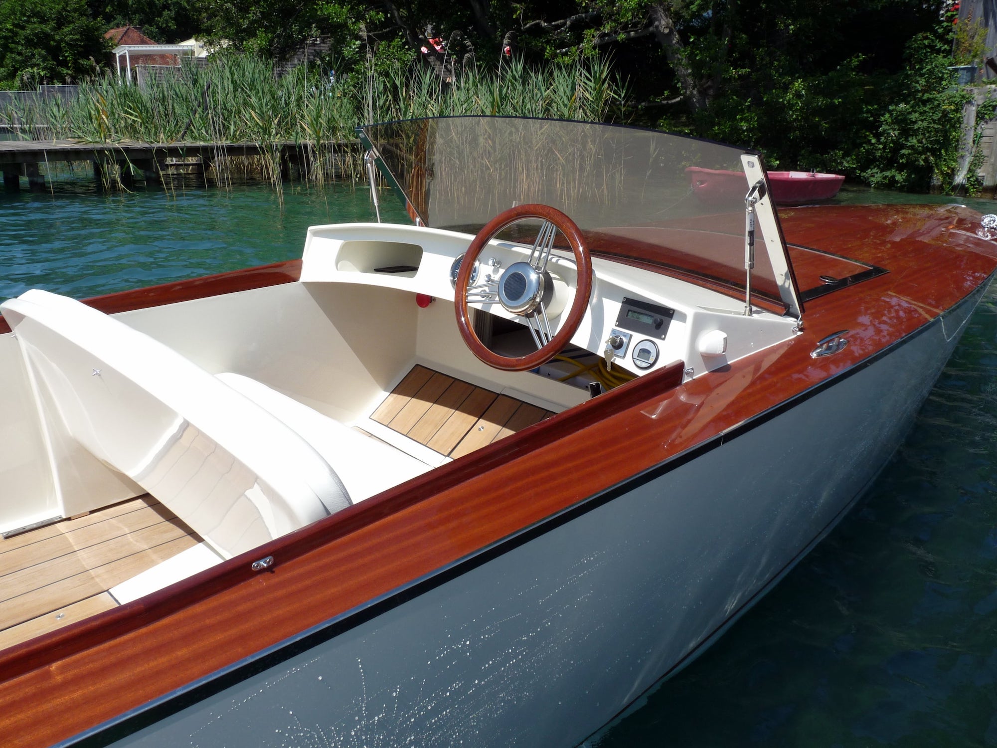 The latest knowledge in boat building techniques and electric propulsion systems makes an uncompromised, zero emission boating experience possible today. Quiet, highly efficient electric motor is built into a timeless design.
