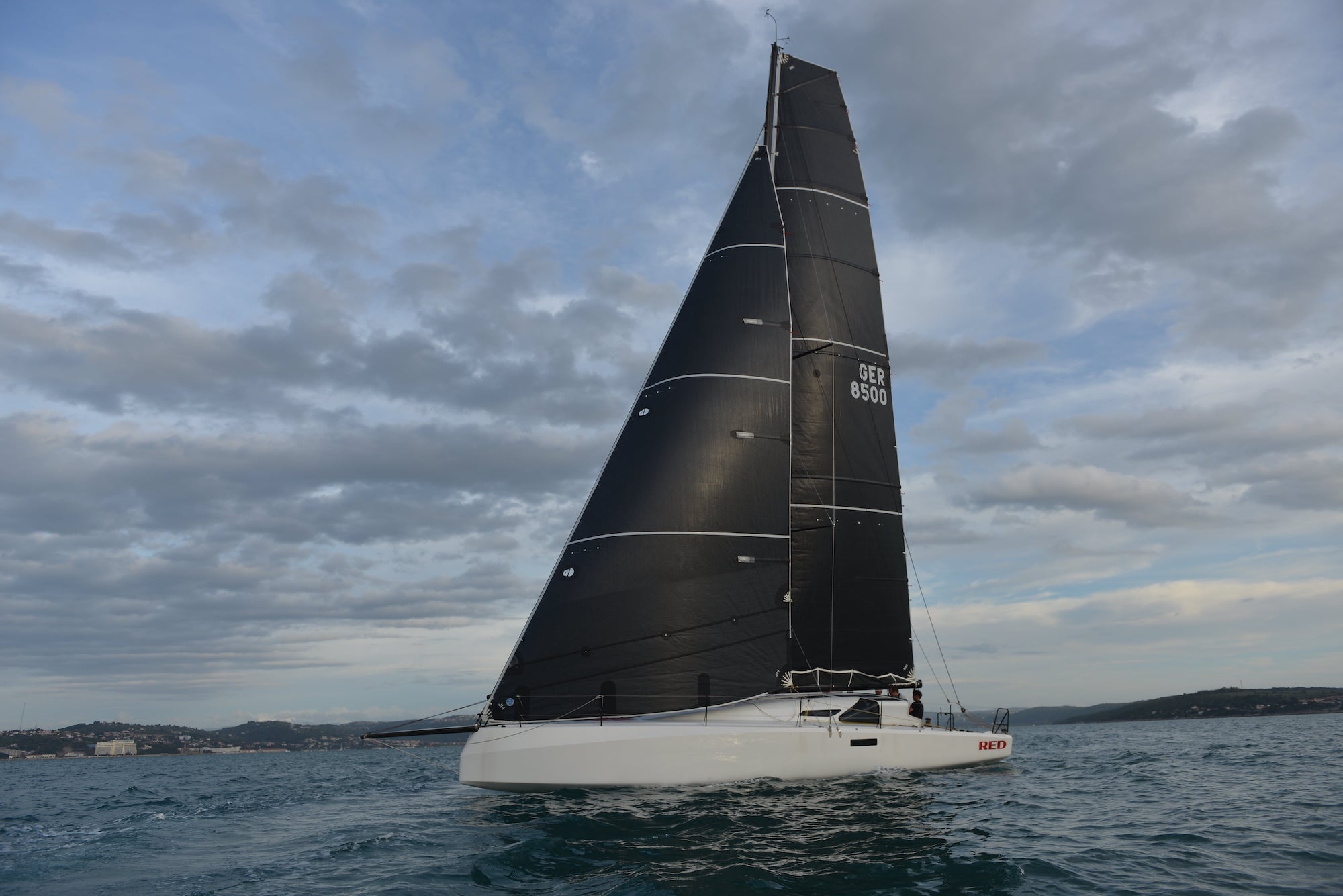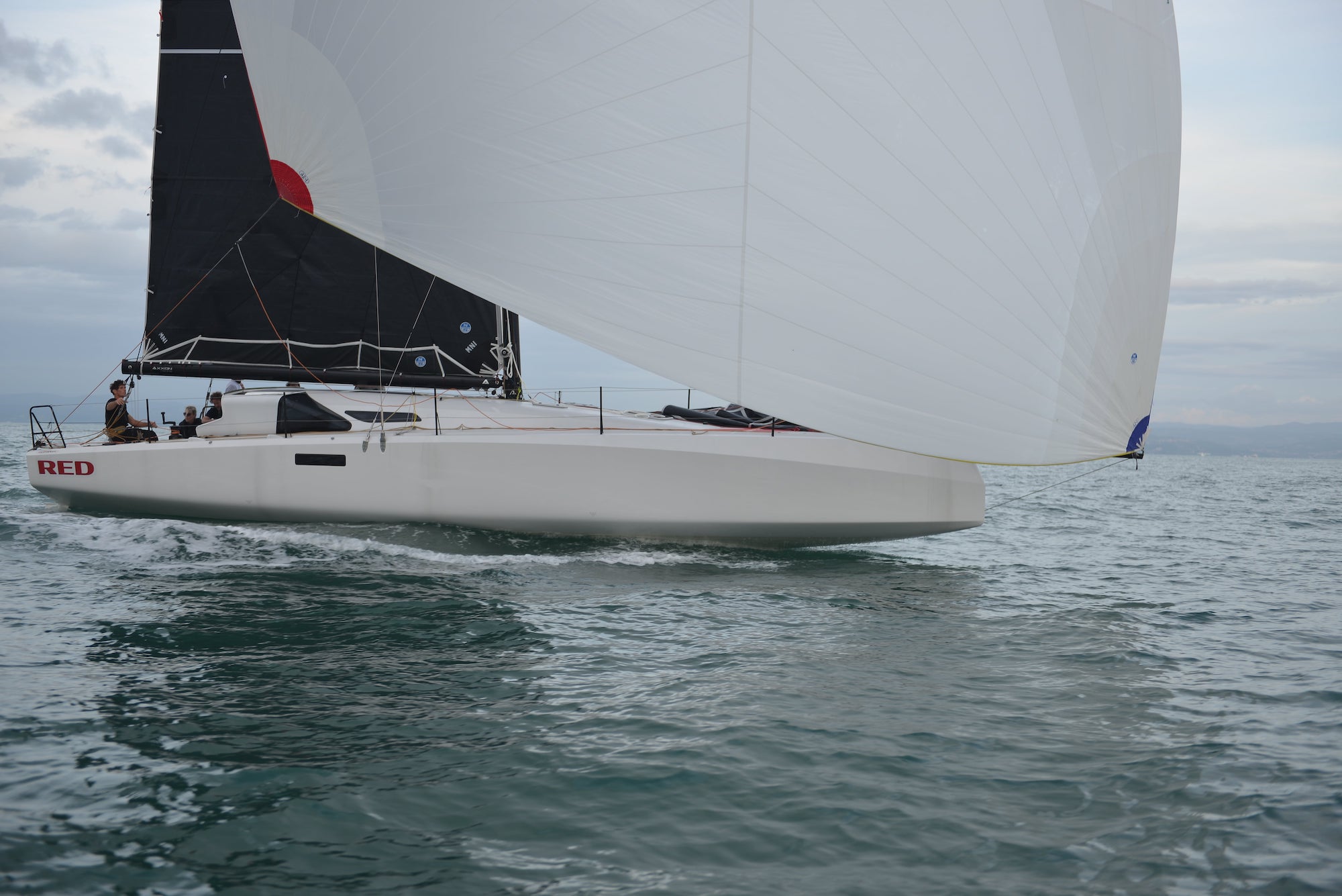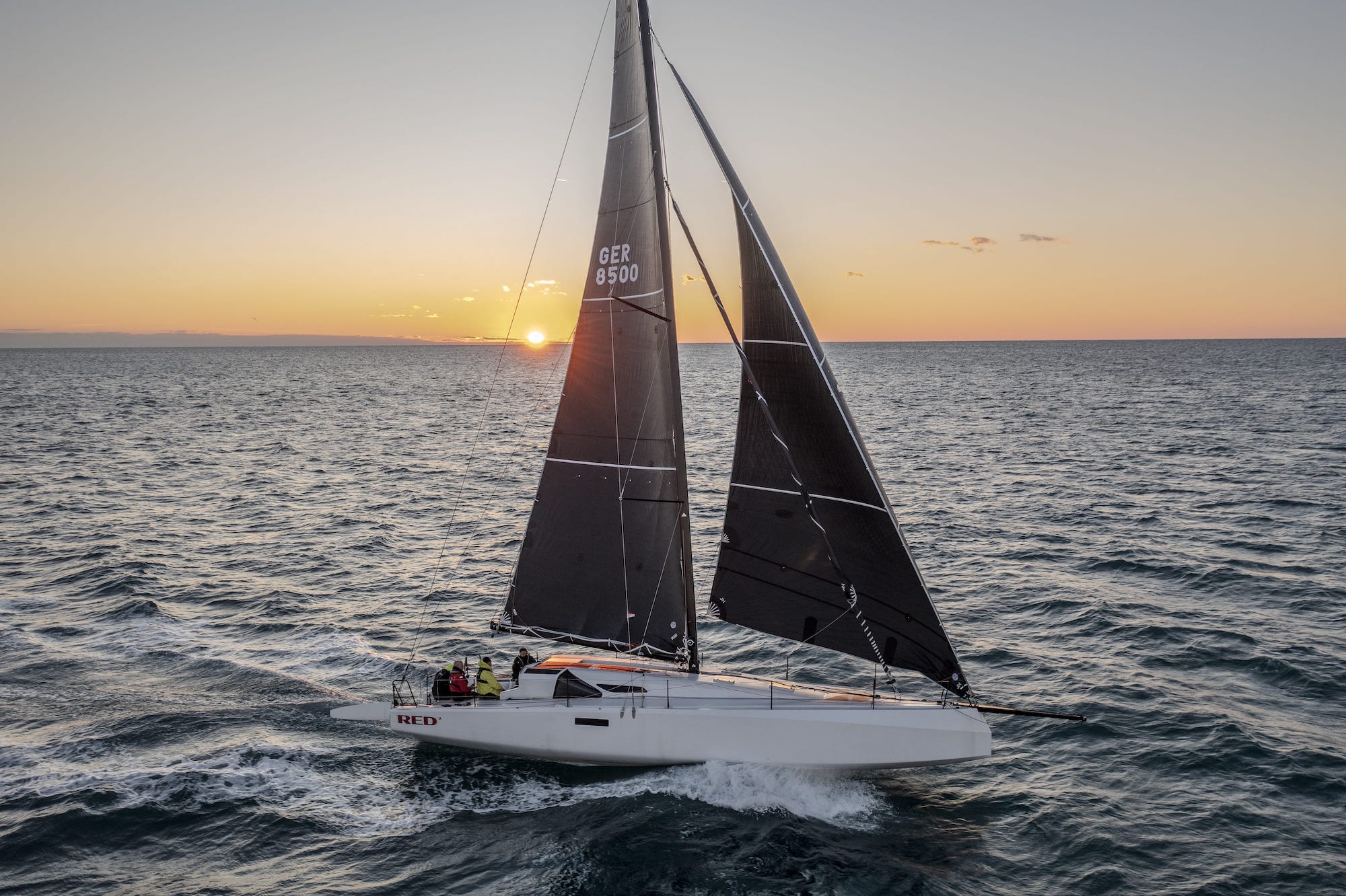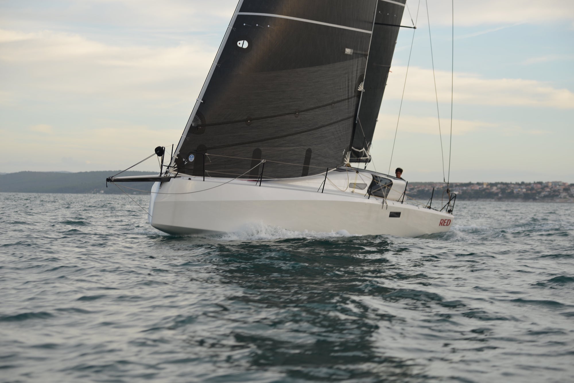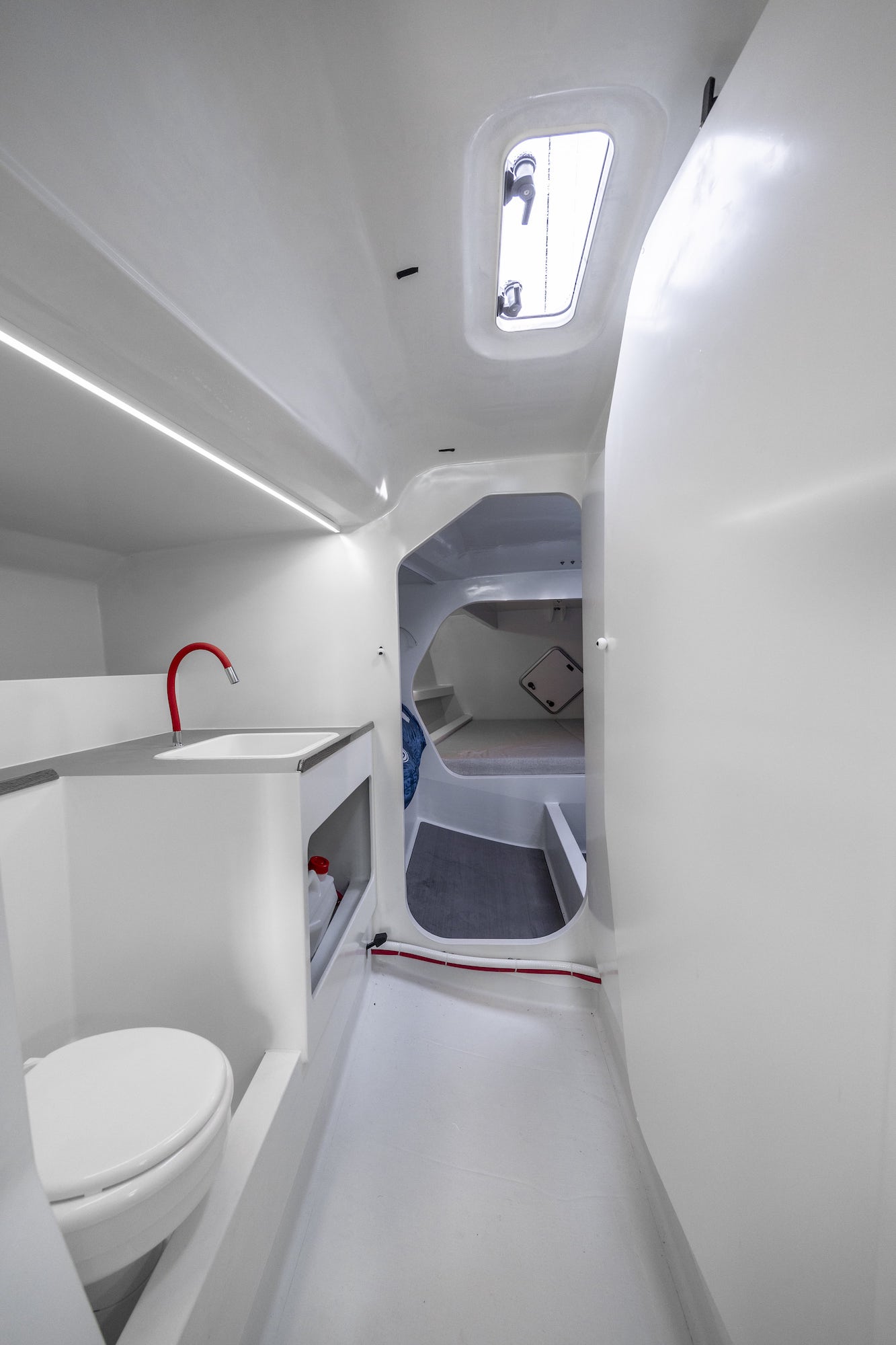 The RED2 is designed to push the limit in offshore sailing for a wide range of client profiles. Using the latest developments in open sea performance and handling, the solution is very similar to a Class40 concept with a longer hull to better accommodate the necessary interior and equipment. The hull shape solution is a development from 15 comparison models, all analysed using latest RANS Code CFD tool. The deck layout is optimised for a short-handed crew and offers multiple seating positions and protection. The cockpit is designed around two entry doors and a central pit console, resulting in a five-winch arrangement. All lines and halyards are run back into the cockpit area so that nearly all manoeuvres are possible inside a protected space. Above deck, the rig and sail plan are optimised for offshore operation and for the IRC rating system. The aim is to reduce all possible performance gaps with the use of flying reaching sails and staysails. That setup helps to improve the boat’s behaviour in heavy sea state conditions, to keep it balanced and to reduce nose-diving. For better control and safety, the boat is equipped with lifting twin rudders. The keel is made from high-strength steel with composite fairing, connected to a lead bulb at 3.0m draught. The use of 750L water ballast divided in 3 tanks on each side allows greater performance and weight reduction for the concept. The water ballast is operated from the cockpit.